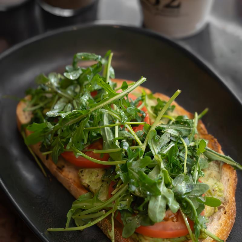 sourdough bread, tomato, arugula